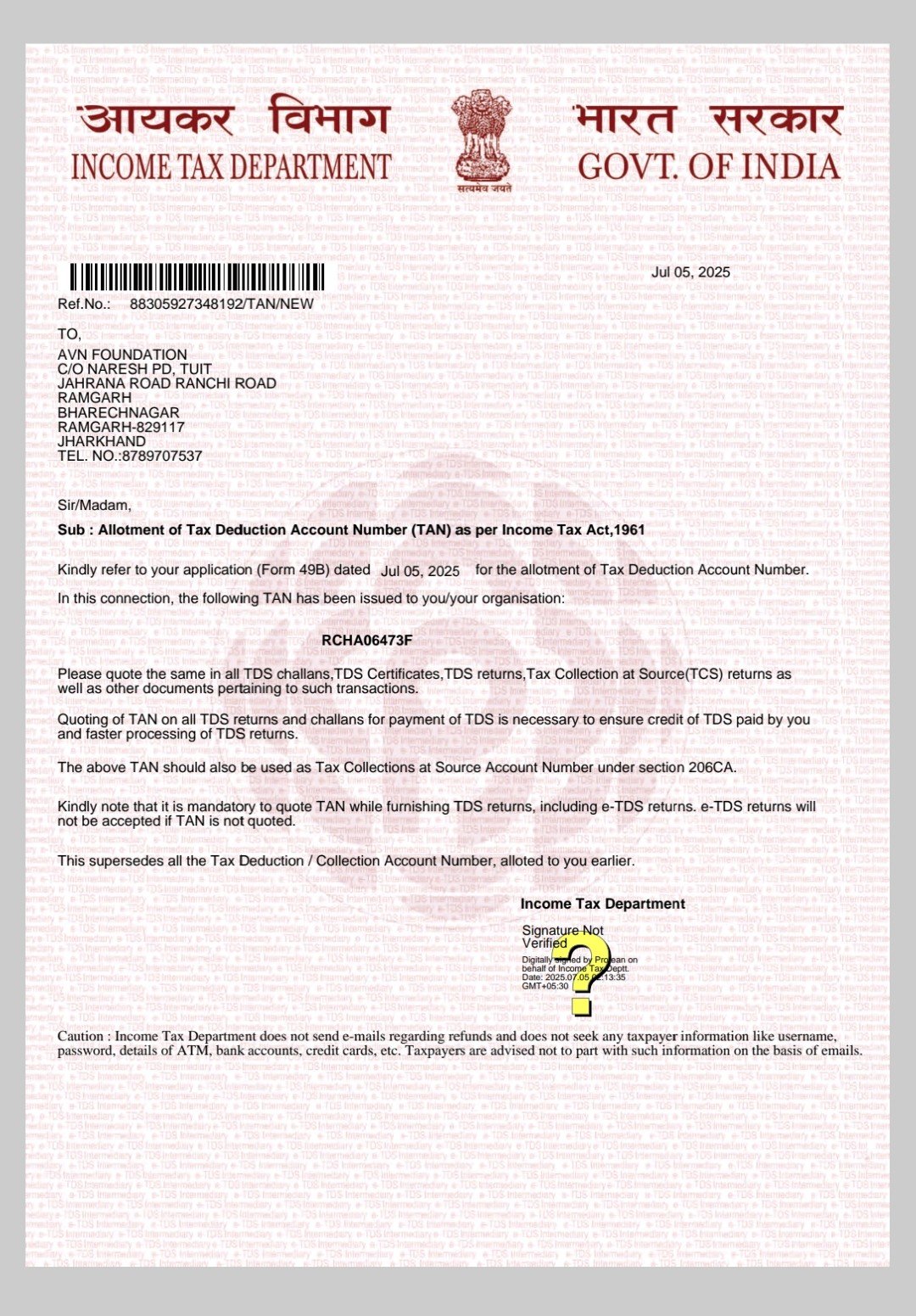 Tuit Jahrana Road, Ranchi Road, Ramgarh, Bharechnagar, Ramgarh – 829117, Jharkhand